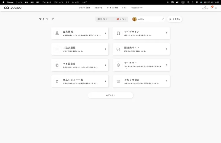 JOGGOのブランドサイトの企画開発、アイテムの色をカスタムするためのフロントエンドアプリケーションの開発、商品注文アプリケーションの開発および受注管理システムの開発を行いました。また、それらのアプリケーション群の継続的な運用開発を行っています。